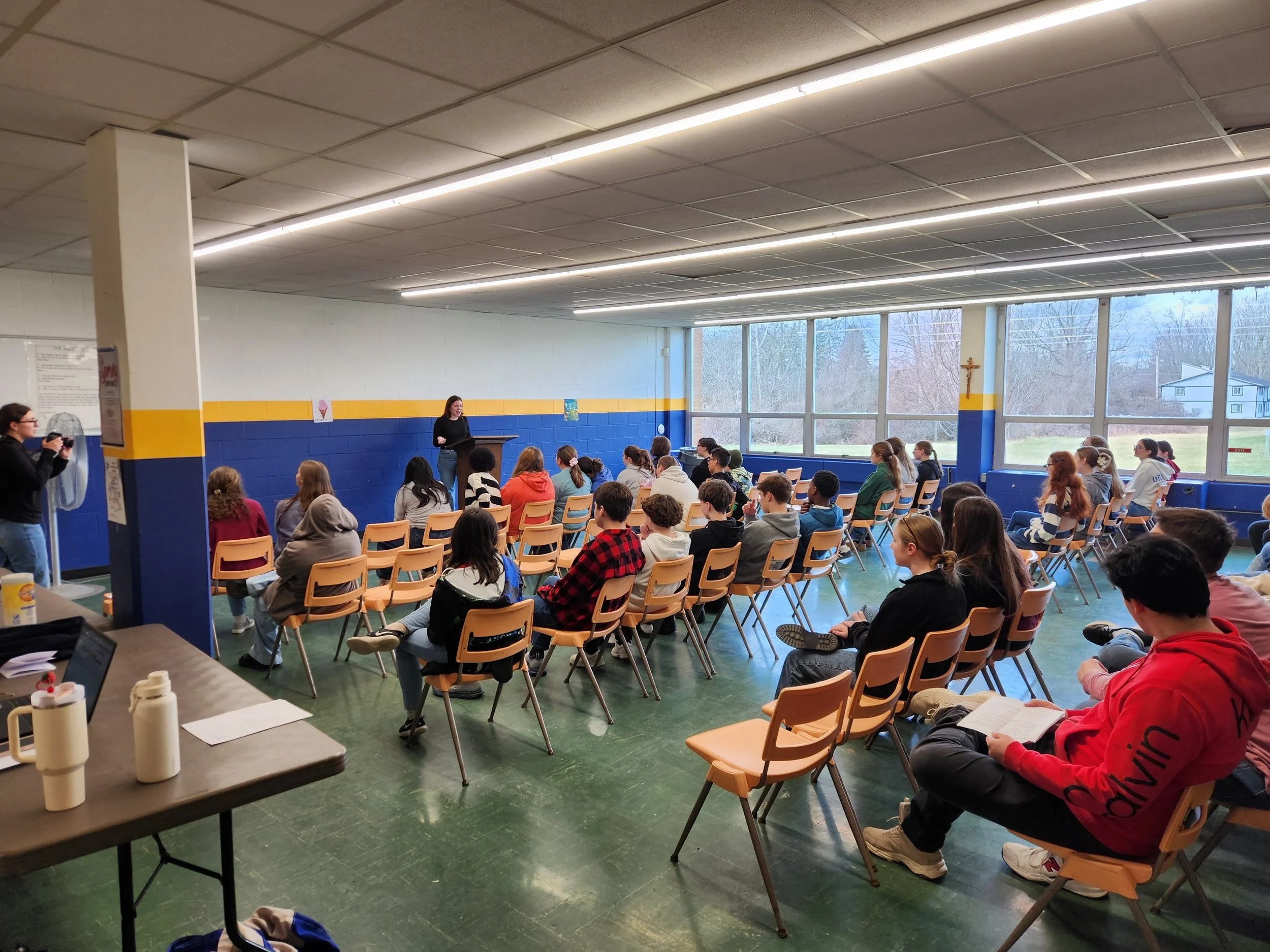 Senior Mary Shaw gives a talk to classmates at the Lent Retreat